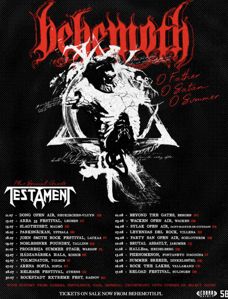 BEHEMOTH frontman Nergal shared his thoughts on the upcoming tour, stating: “Wow! What a summer we have planned! We cannot wait to get back out into Europe, and celebrate our 33 years of Behemoth. There will be surprises and spoils galore!“