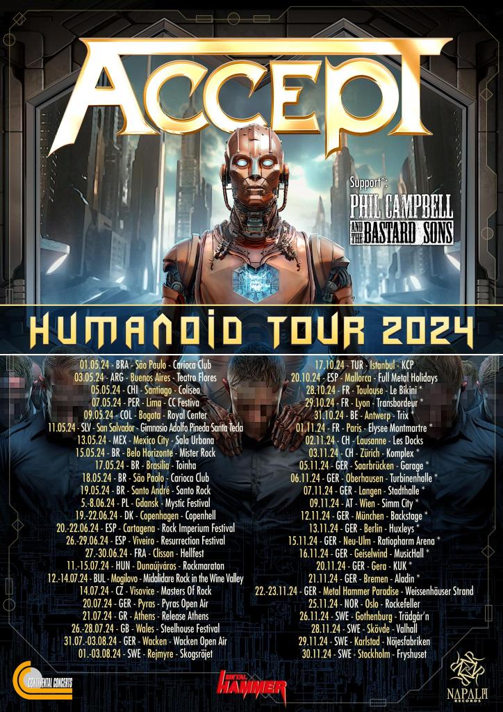 Founded in 1976, ACCEPT, the long-standing legendary German titans of heavy metal, are back with a fiercely awaited and highly acclaimed new studio album, entitled Humanoid, to be released on the 26th of April, 2024 via Napalm Records.