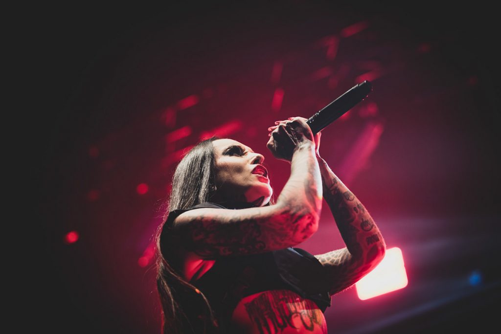 The atmosphere shifted as special guest JINJER took the stage, bringing a unique and dynamic element to the lineup. Led by the magnetic Tatiana Shmayluk, Jinjer captivated the audience with their genre-bending style. Shmayluk’s vocal range was on full display as she moved effortlessly between clean singing and guttural growls, creating a mesmerizing performance. The Ukrainian band’s set was both melodic and intense, with intricate instrumentals and raw emotion that resonated deeply with the crowd, bridging various metal subgenres and appealing to a wide range of fans.
